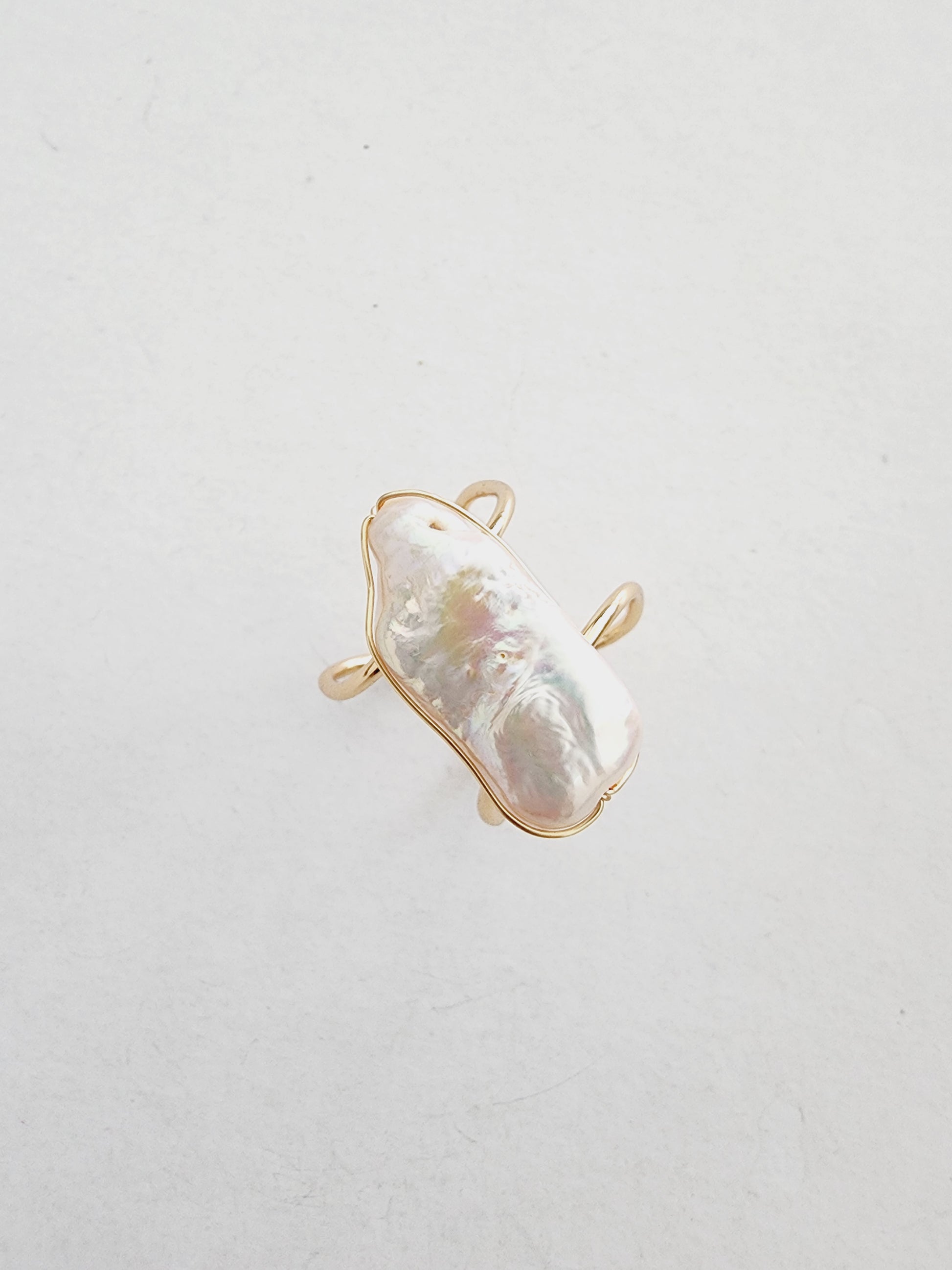 Adjustable pearl ring on a golden base. Don't worry about the size, just adjust and go. Let the party begin!