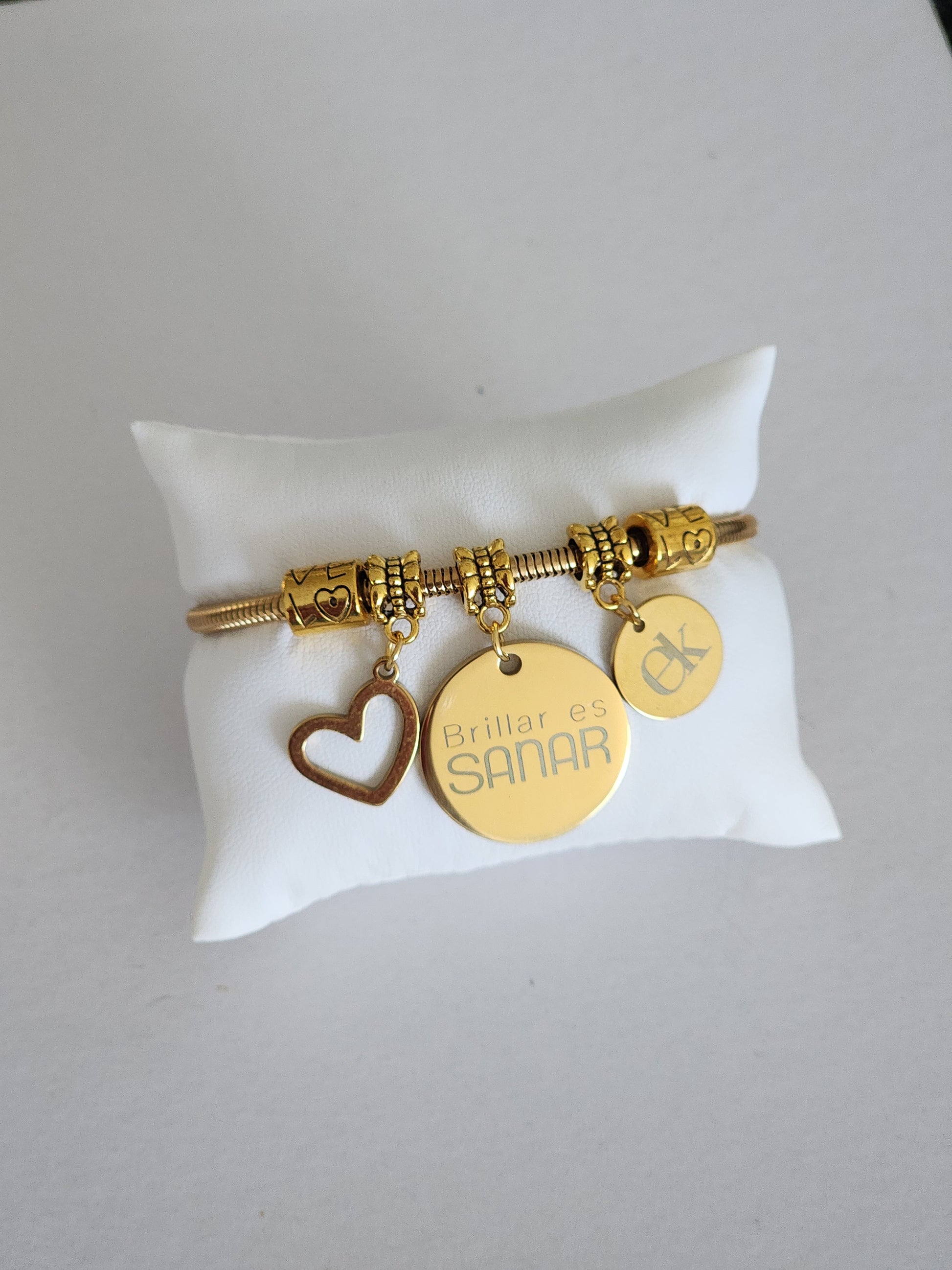 Pendan personalizado con la frase “Brillar es Sanar”.