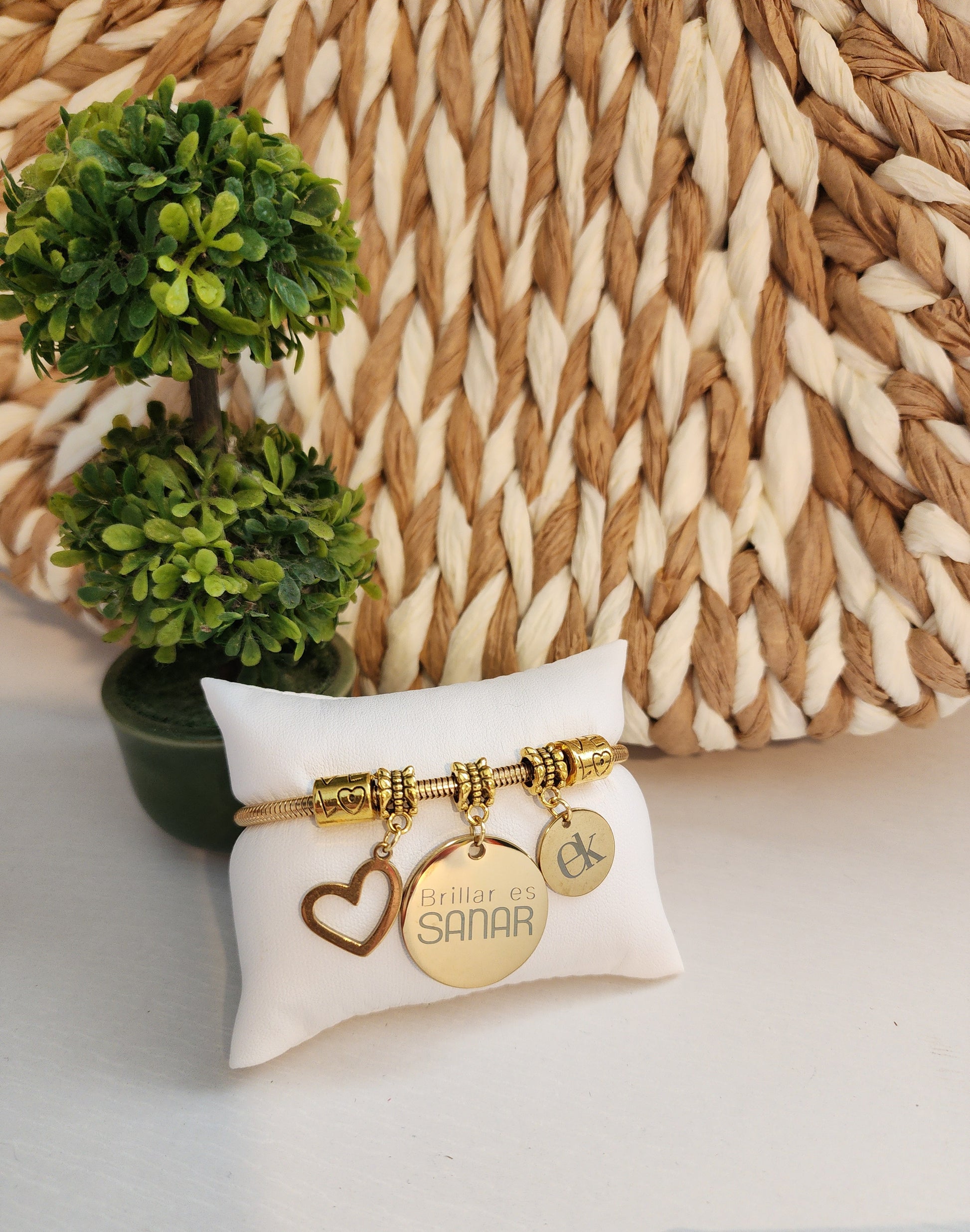 Cada cicatriz cuenta una historia, y cada paso que das hacia tu sanidad ilumina más tu camino. La pulsera Brillar es Sanar es un recordatorio de que sanar no es perder, es recuperar tu luz y compartirla con el mundo.