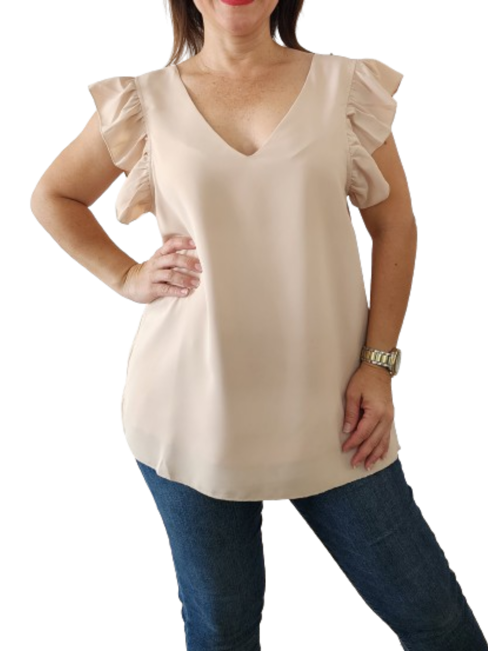 Very elegant cream-colored shirt with a V-neck and a spectacular design on the back. It looks very delicate and beautiful, perfect for that activity where you want to look very elegant.