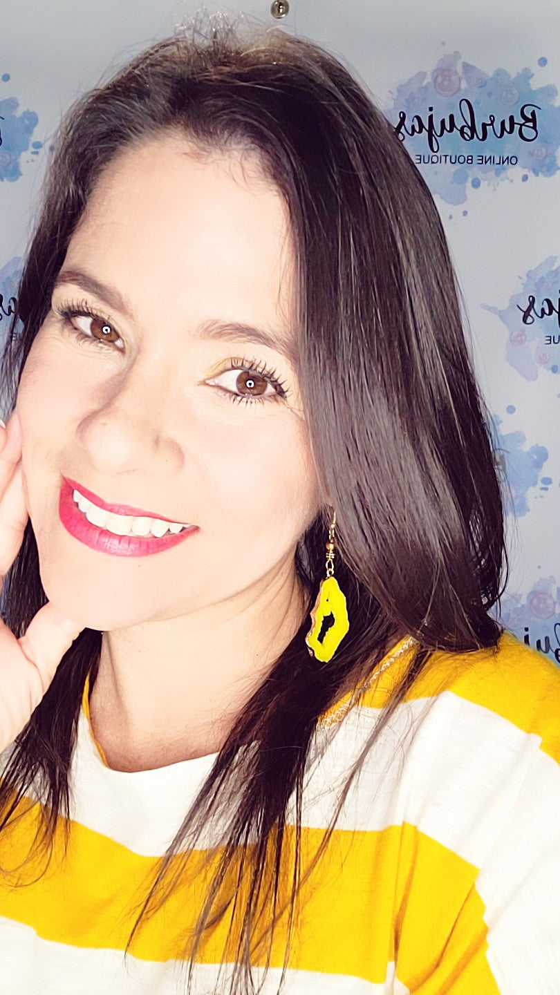 Spectacular resin earrings simulating quartz in aqua and yellow. They look real real and they look great. Believe me they will ask you if they are real quartz as beautiful as they are.