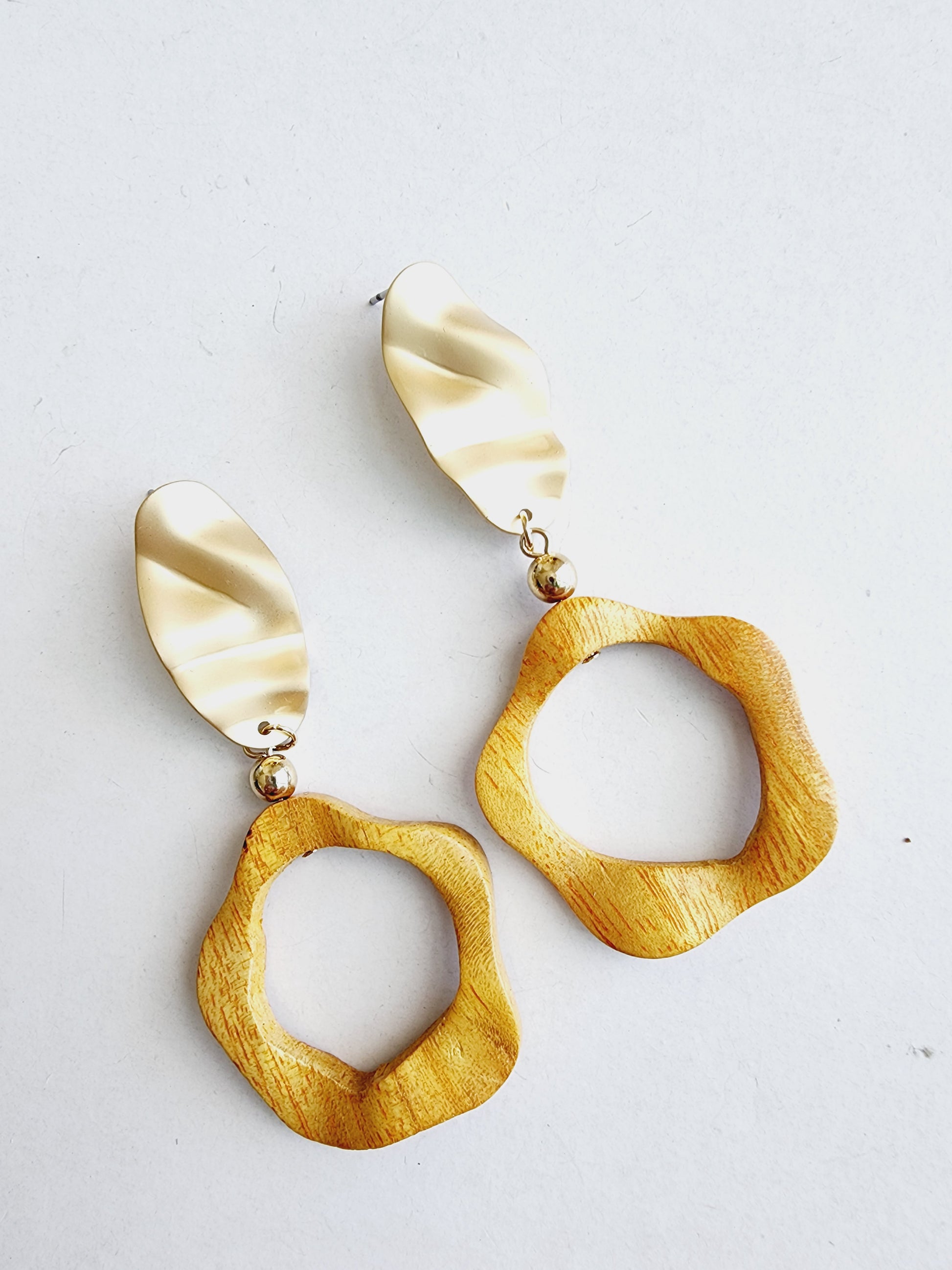 Super light wood earrings with beautiful golden stud. They are perfect for the shirt you are going to wear this weekend and the best thing is that they are not heavy. Always diva!