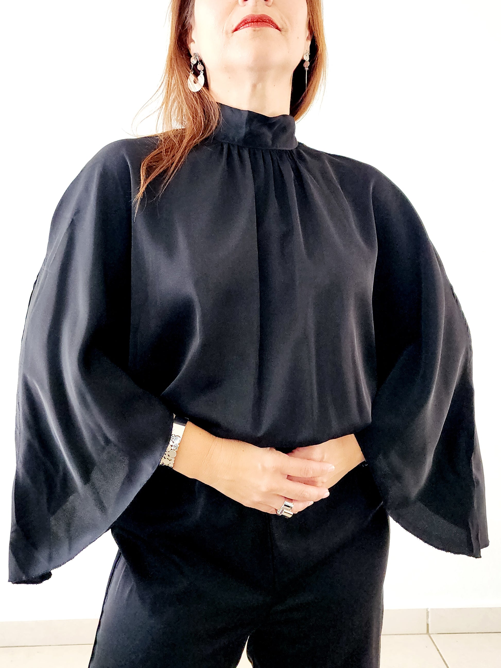 The wide sleeves allow you to wear it in two ways: covering your arms for a more elegant look or leaving them uncovered for a more daring touch. Its wide cut both at the top and on the legs provides movement and fluidity, making this piece an ideal option for special events or stylish outings. ✨