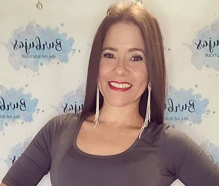 Hermosas pantallas largas en flecos color blancas y azul perfectas para esa camisa o vestido que no lleva collar.