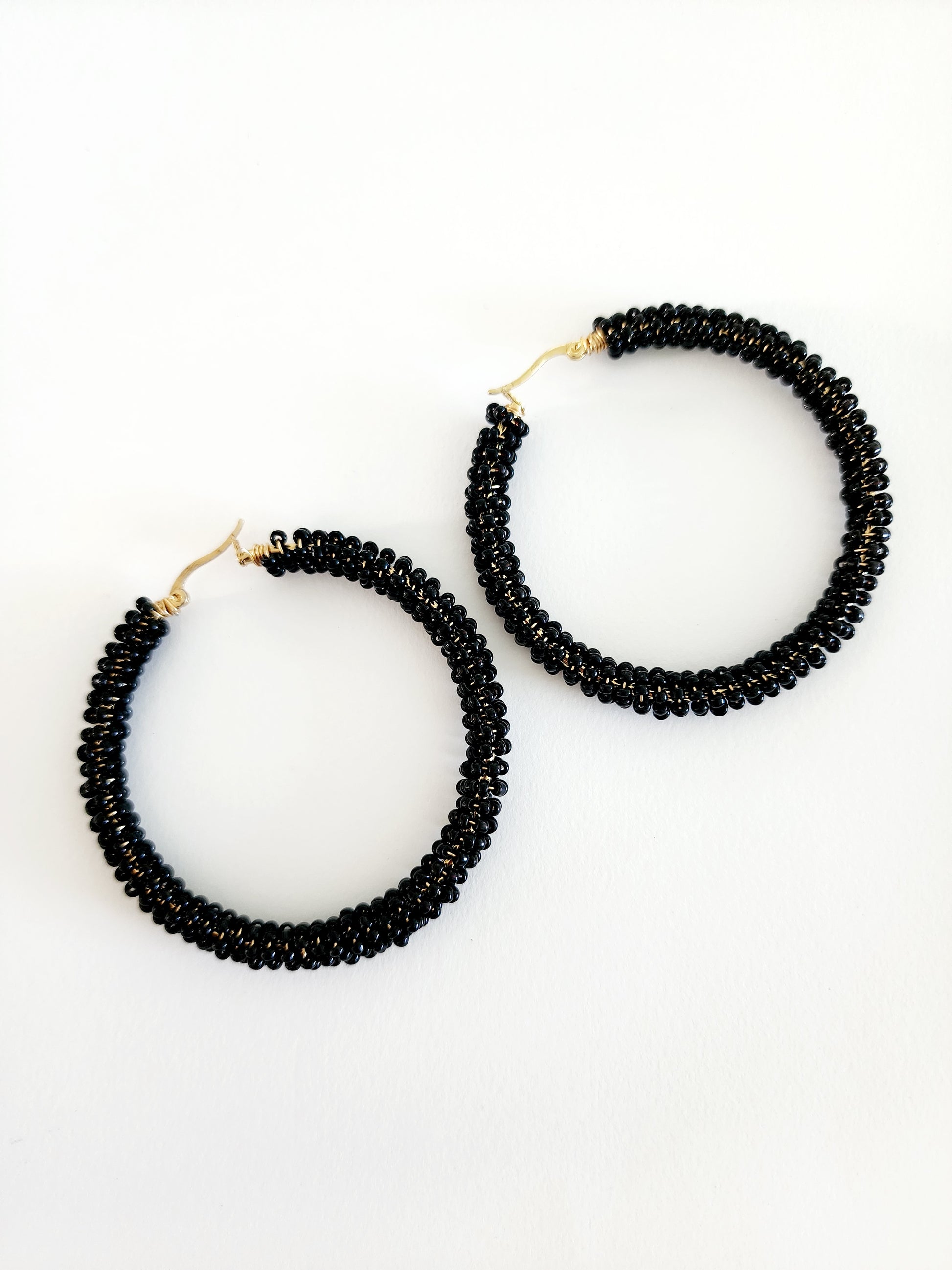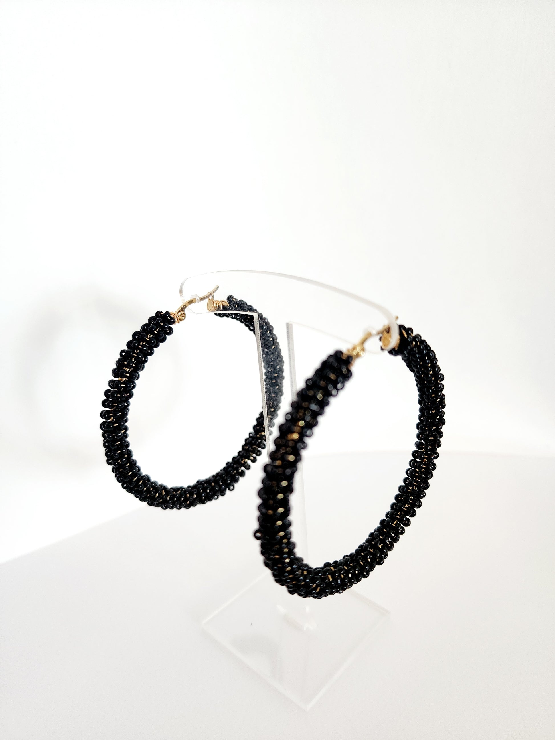 Sofisticación y estilo en un solo accesorio. Estas pantallas redondas cuentan con una base dorada forrada de pequeñas piezas negras, creando un contraste elegante y moderno. Su diseño ligero las hace perfectas para complementar cualquier look, desde el más casual hasta el más elegante.