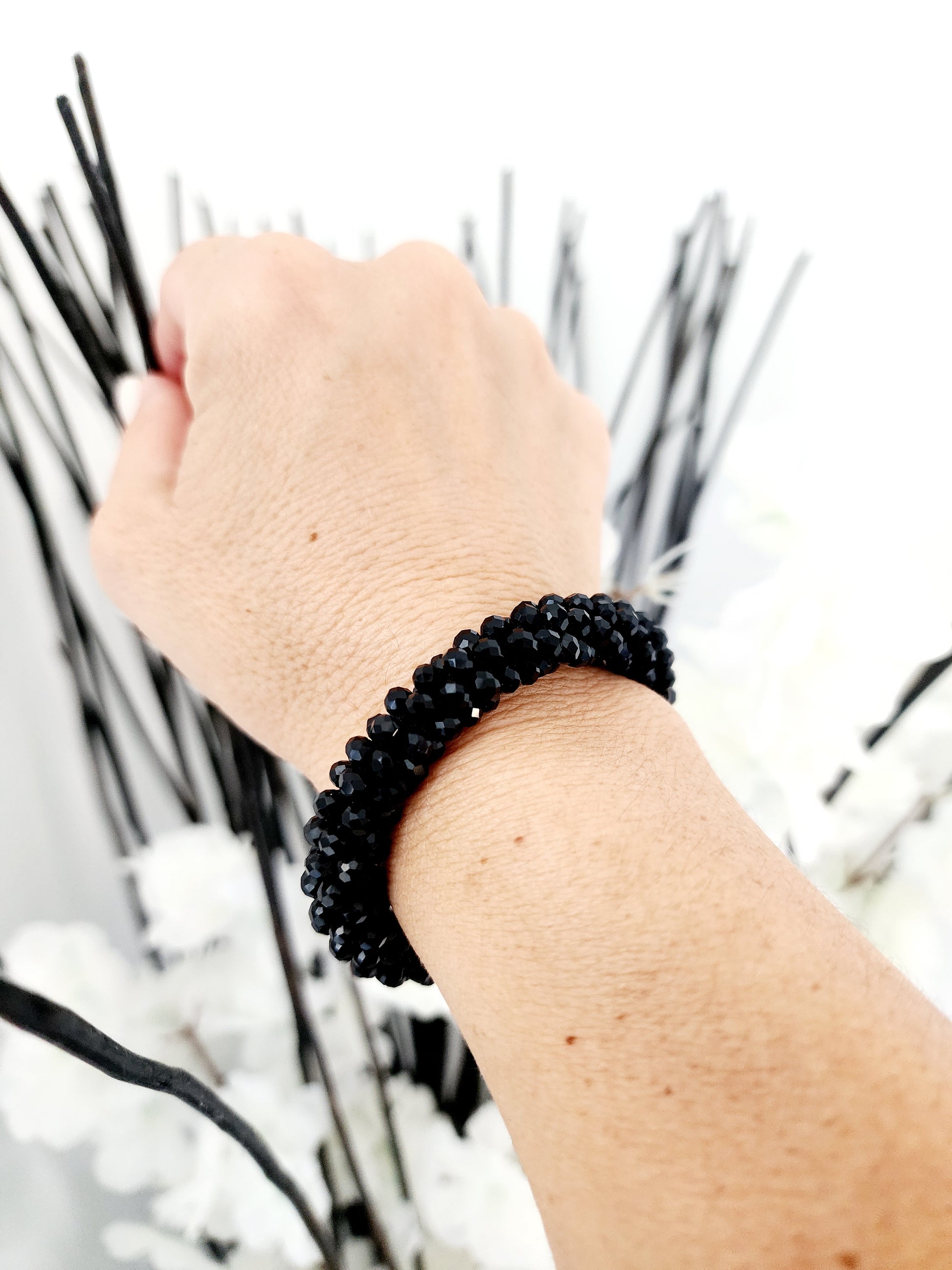 Simplicity and sophistication in its purest form. This handmade bracelet with black beads is the perfect accessory for any look, from the most casual to the most elegant. Its unique design highlights the beauty of the black color, giving it a touch of mystery and timeless style.