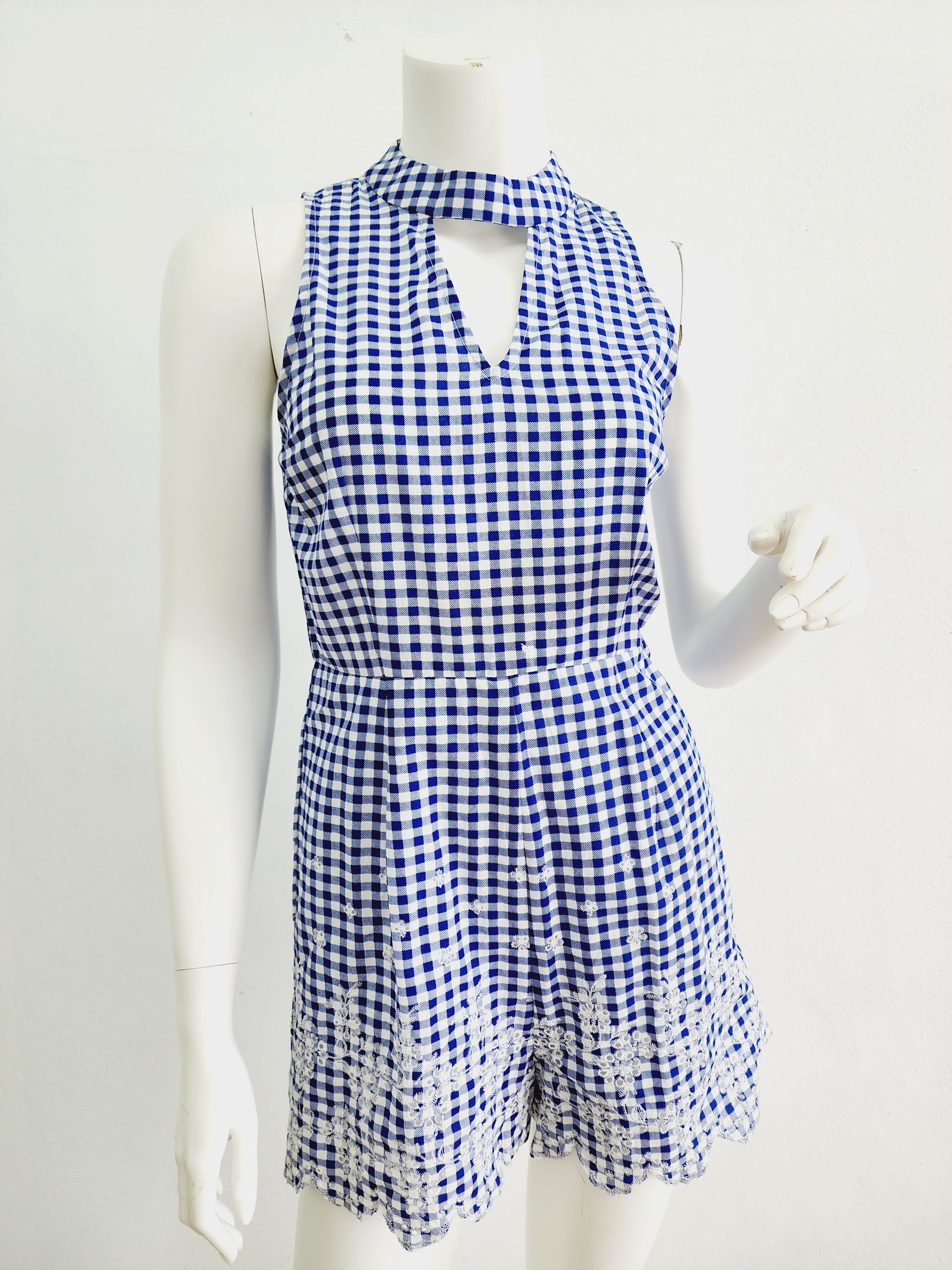 Delicado, hermoso, cómodo y especialmente para ti. Romper en cuadros pequeños corte en V en el cuello y un hermoso tejido de flores blancas en la parte de abajo. Cuenta con forro para que sientas mayor protección.