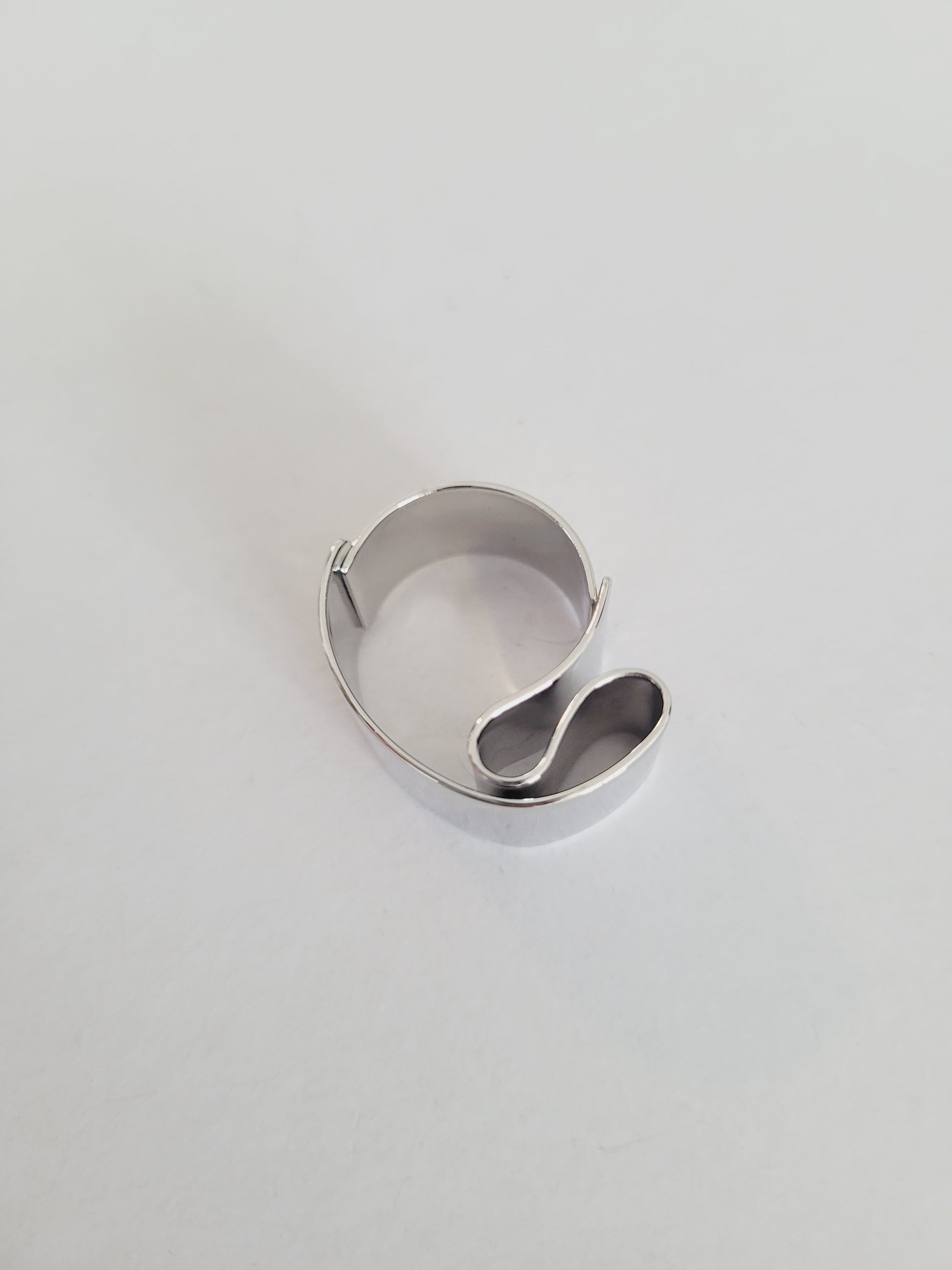 Different as you like to look. Silver ring with a really spectacular curve on it. Making the difference between your friends and looking fashionable.